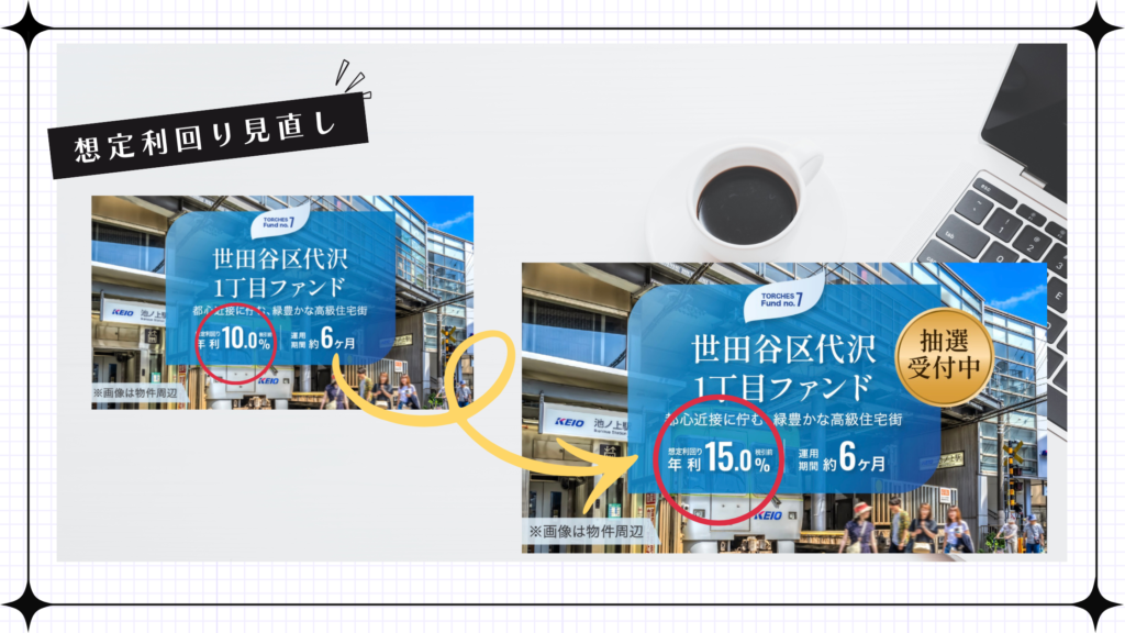 アマギフキャンペーンも対象のこのファンド!何と想定利回りが10%▸▸▸ 15%に修正がありました。